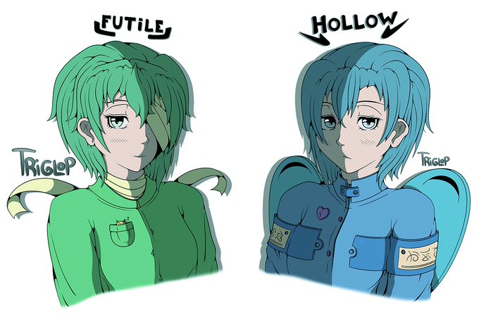 They are part of my random character collection code names - RGN 76 & 77. Hollow and Futile part came while listening to music. ^^" And I didn't really focus on coloring, just made two simple colored versions. ^^