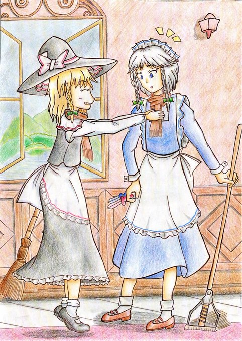 「営繕係からのクリスマスプレゼントだぜ!」 #色鉛筆 #魔理沙 #咲夜 #妖々夢