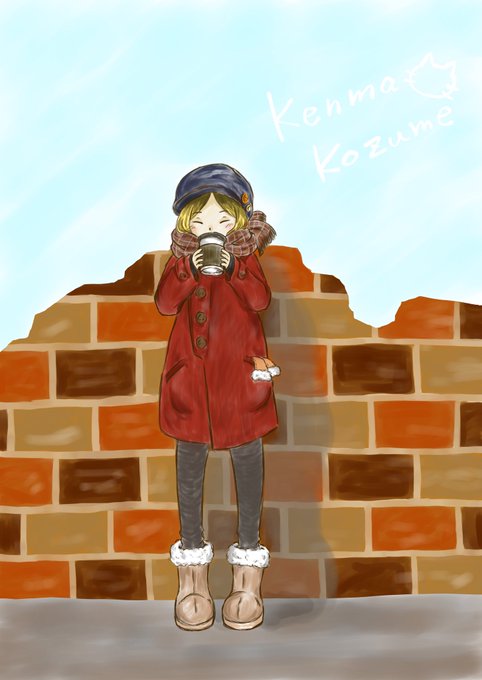 あったか飲み物飲む研磨🐱 マフラー可愛くかけたので満足! マフラーにちょっと長い毛がふわっもふって入ってるのが好きです!