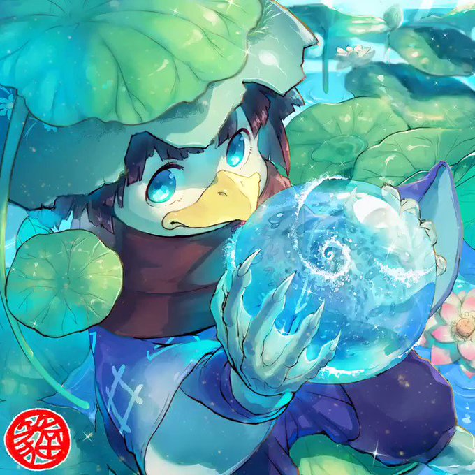とあるワラビー(寮生)のために河童だけはがんばって仕上げた 線画と完成(トリミング無し) #陰陽師