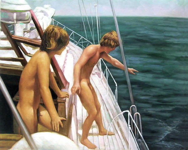 Original painting print of a naked young man Crawling in a Lagoon, inspired, https://t.co/gpT9LXEq0k