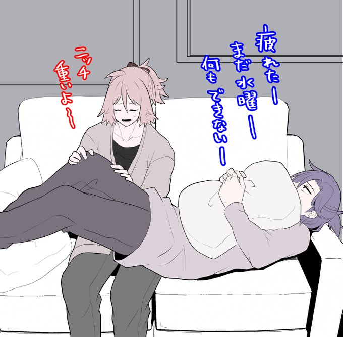 ニッチとシヅ➂ ニチノは仕事がキツくて水曜あたりは大体死んでる。(けど仕事は嫌いじゃない) シヅキはフリーランスかな~。