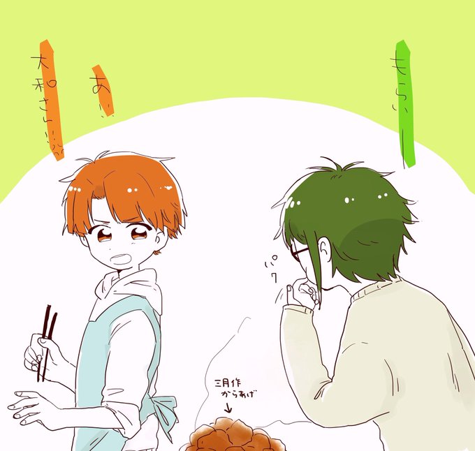 夜テスト勉強してたら七瀬さんがホットミルク作ってくれたのが嬉しくて顔がほころんじゃう一織 を描きました😌