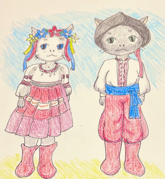 ウクライナ🇺🇦民族衣装 早く平和🕊になりますよう #Ukraine #イラスト