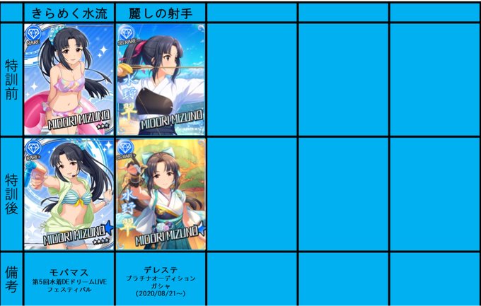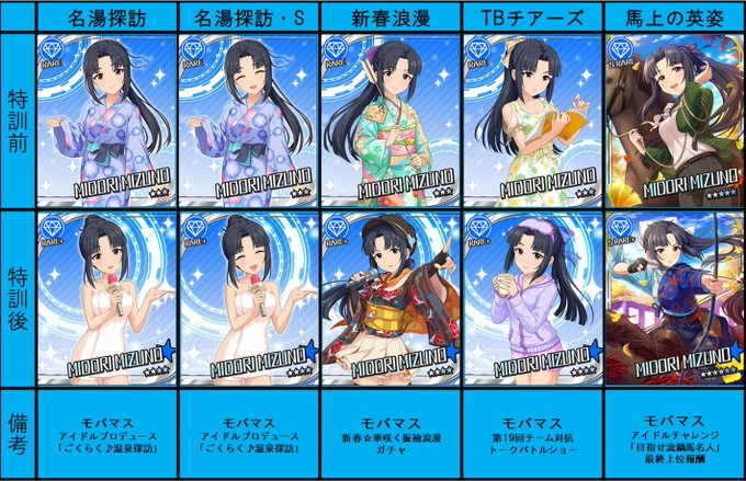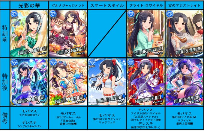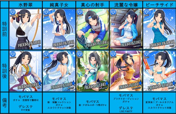 #水野翠 のカードリストも更新。現状17種類。2020年8月に大トリでSSR実装されたのを反映。 翠の様々な表情を見て好きになってもらうきっかけとなれば嬉しいです。