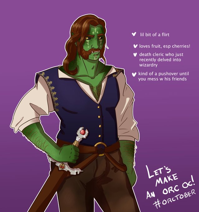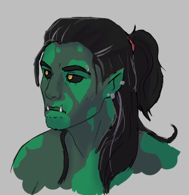 here's my finished boy for #orctober! using bennie's orc OC creator. what should i name him? :O