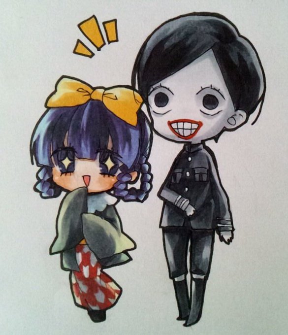 #HTF版深夜の真剣お絵描き60分一本勝負 『メリーバッドエンド』※擬人化注意 「お前は必ず助かるさ、なんせ俺がいるんだから!」 "次"までの俺達だけの世界 前と構図似てるなと今更気付いてしまった……