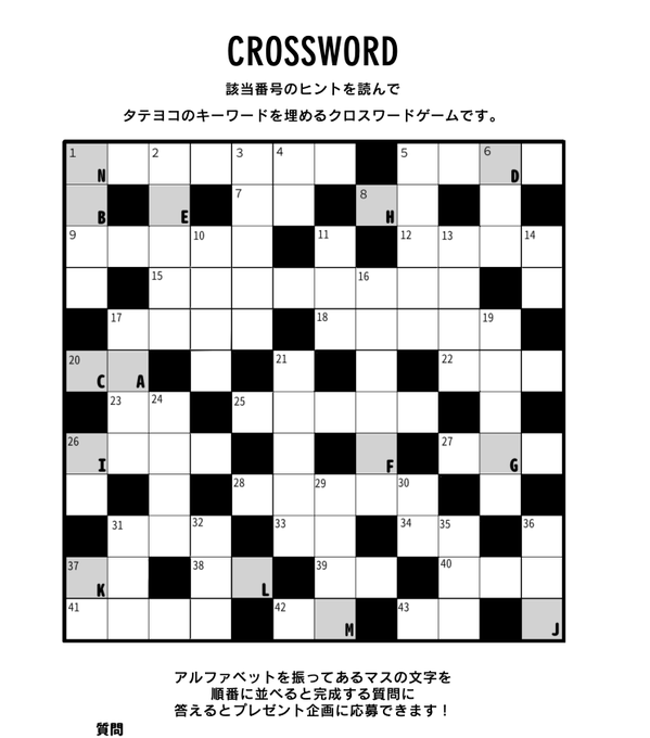クロスワードは正解すると抽選でプレゼントが当たるチャンスもあります🎁