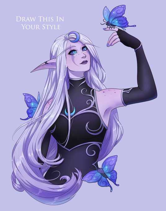 So I decided to do a #drawthisinyourstyle featuring one of my favourite artists -- @Faebelina! 💜🦋