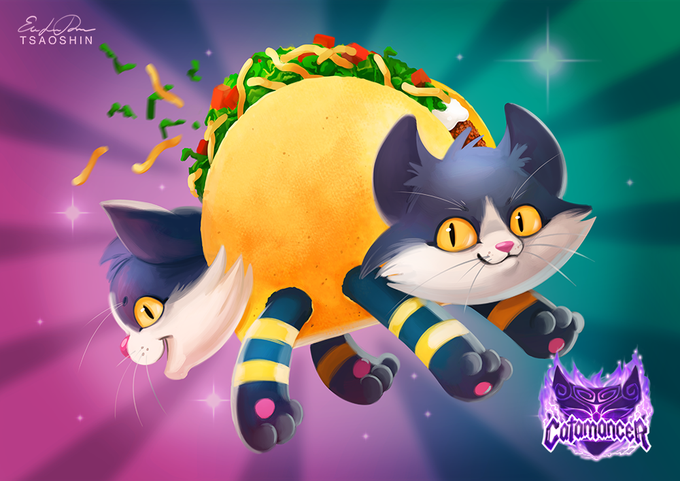 Tacocat card for the Catamancer TCG by Frostbolt Games. Tacocat is a palindrome!