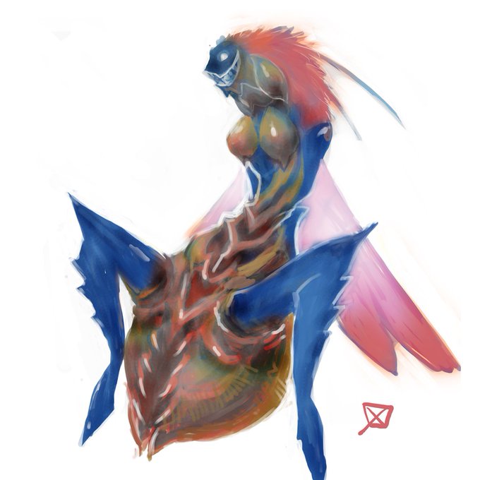 #人外版深夜の真剣お絵描き60分一本勝負+20min 【メリュジーヌ】 全部肌色でタイムオーバーです!