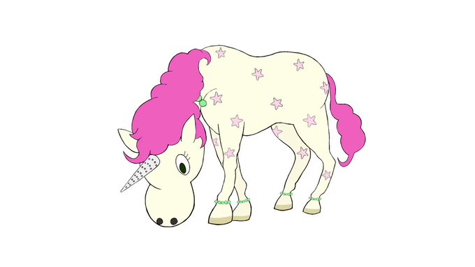 進捗。ユニコーン寝姿彩色完了。あとは背景。