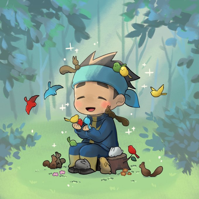 一見穏やかに見えるが内心自分の怪力で小さき命を壊してしまうのではないかと心臓バックバクの🌳くん