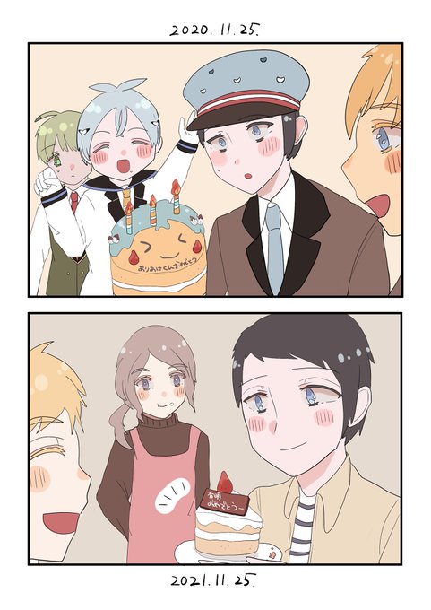 「え、かもめさんの顔……?……いえ、嬉しいです。食べていいんでしょうか……」 「ありがとうございます。祝ってもらえるっていいですね。……本当に、そう思います」 11月25日は有明の誕生日🎂おめでとう