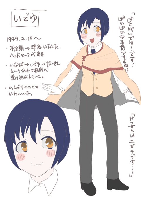 桃陣さん(@JinyaMomoyama)のひとめくんお借りしました……☺️ゆかいな服好きなところがかわいいです😌めんたいこの顔が可愛かったので着ていただきました!