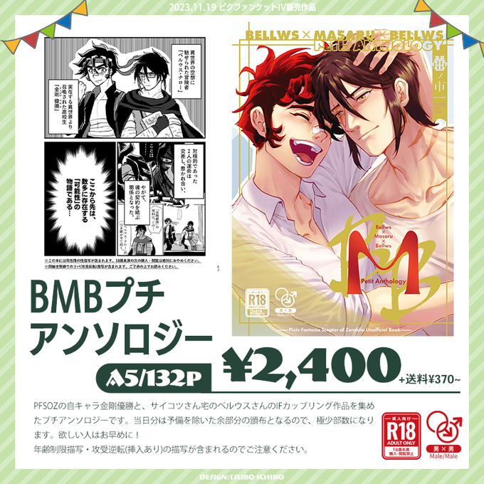 BMBプチアンソロジーの余部が若干きたのでこちらも当日販売します。極少部数…具体的にいうと2~3部しかないので、欲しい人はお早めに!また、アンソロに書き下ろした短編の単話電子版も当日配信予定です。