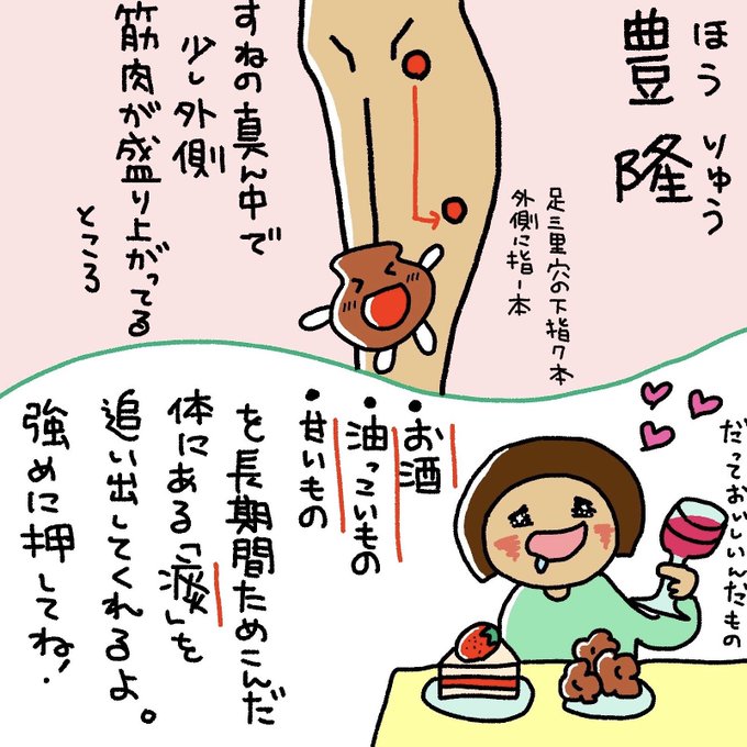 「胃の調子が悪く、めまいがします」 冷たい飲食物を取りすぎ体に要らない水が溜まると、水滞という状態に。 陰陵泉、豊隆へのお灸やツボ押しが効果的。 さらに、おみそ汁など温かいものや、繊維の多い野菜も食事に加えましょう。 #陰陵泉 #豊隆 #きくのツボ押し
