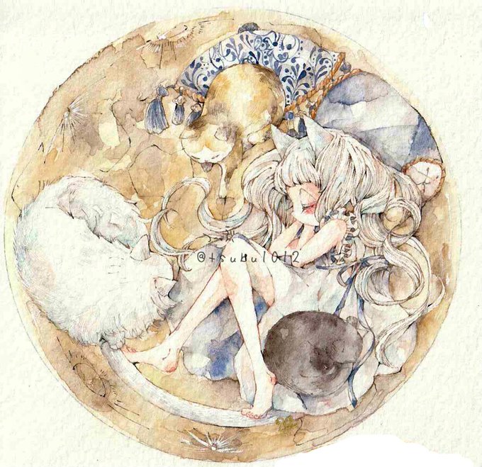 透明水彩を使って好きな雑貨や動物を紙に詰め込んでます。