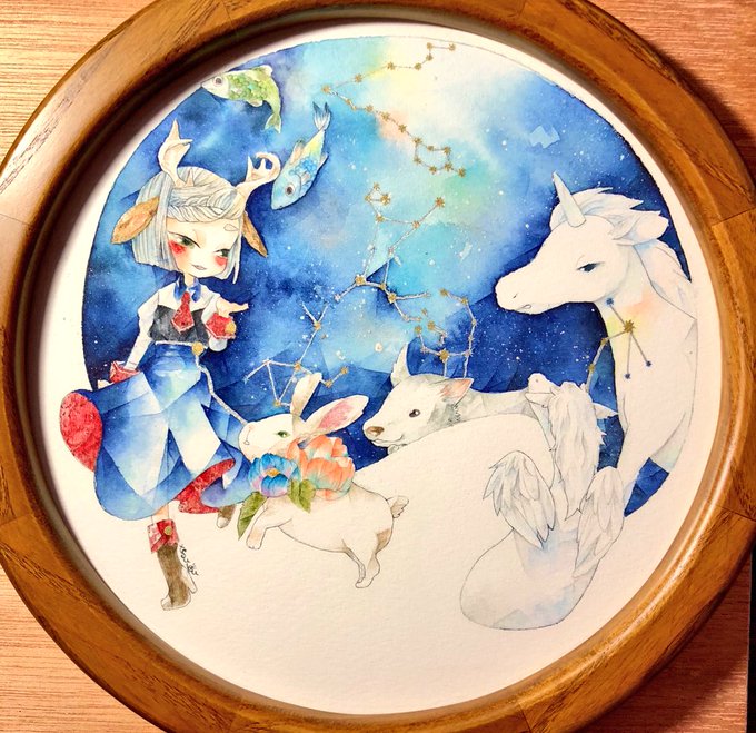hana*輪さん(@sirokumamarin)で開催されてます『1/2の星空展』に出展しているミニ原画の『はと座』さん、お迎えいただきました😭