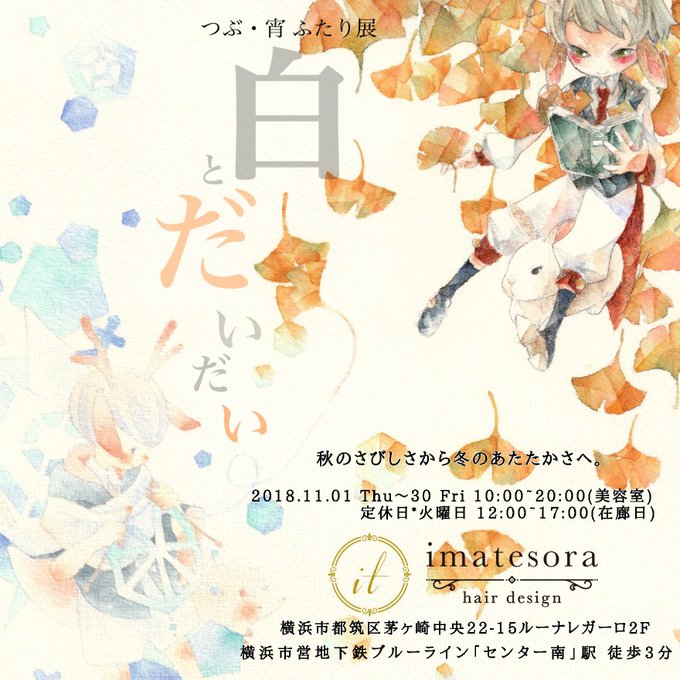 11月より1ヶ月間、宵さん(@yoiir0)と美容室イマテソラさん(@imatesora)の店舗をお借りして開催します🦔