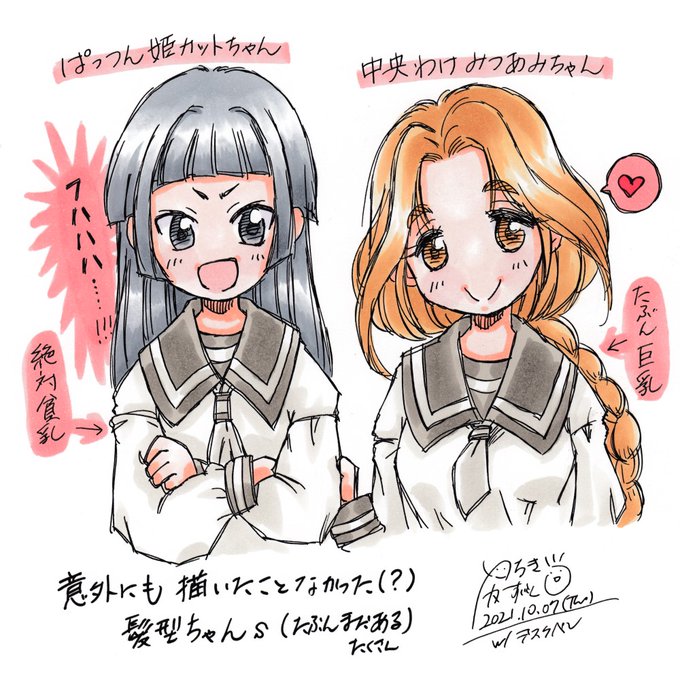 その2。5)考えてみれば描いたことなかった髪型ちゃん、ぱっつん姫カットと前分け(7日)。6)描いたことなかったちゃん中等部、ふわもことツインテ(9日)。7)リボンタイを結んでみるもとリスちゃん(10日)、8)「うまい」「うまくない」論争を聞くたびにおもうこと(12日)。つづく。