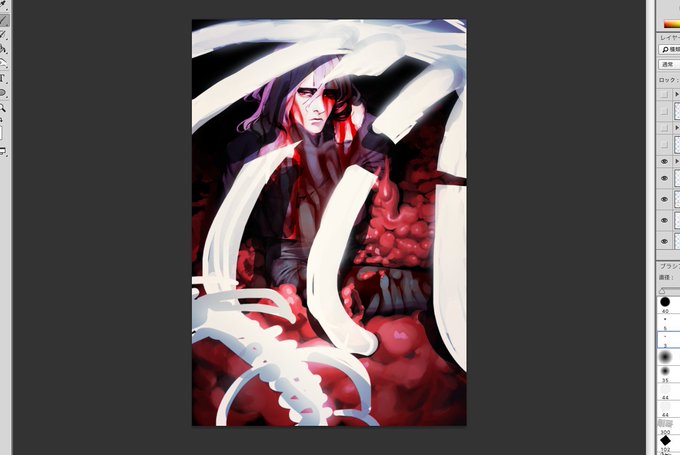 目の大きさ修正して髪のシルエットと毛先を加筆中。あと顔の輪郭の影をいじりました