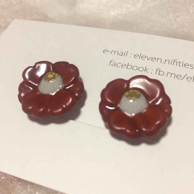 セイくんとお買い物に行って、椿モチーフのイヤリングを買いました✴︎ これは九谷焼という焼き物です。深みのある赤色とキラキラな金がお正月感あります~ これを付けてセイくんとお出かけ早くしたいマン。