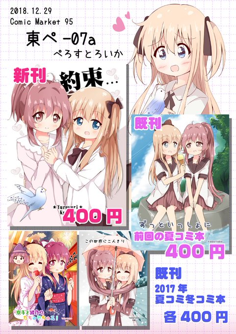 コミケのお品書き作りました!今回は新刊1種と既刊3種持っていきます。全部ゆるゆり京綾本400円です。よろしくお願いしますー!