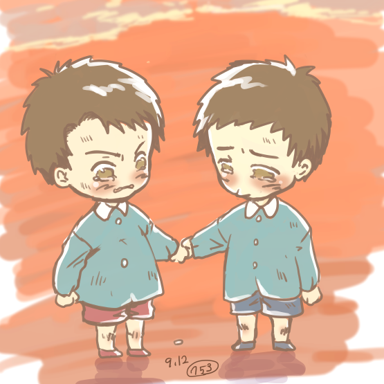 「なくなよせいぎ!せいぎのみかたはないちゃだめなんだぞ!」 「んっ!」 (このあと先生がきたらせいじめっちゃ泣く)