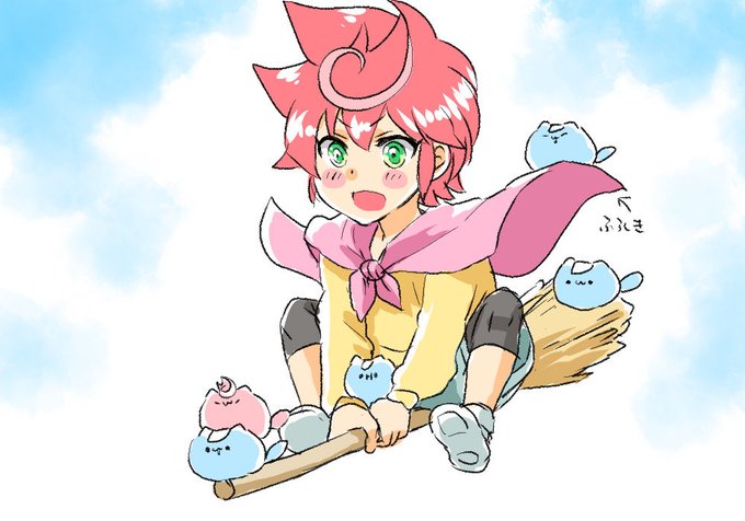 > ズ魔法使いになりたくて🧹にまたがってチチンプイプイ唱えてる子🌀と子😺達。
