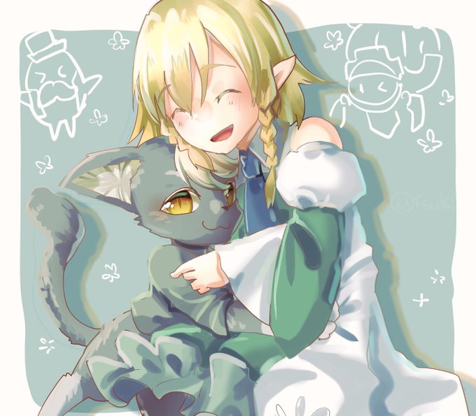 #ヨコジのお絵描き大会 お題は「推しモブ」だったので 推しのエルフモブ子ちゃんと黒猫ゲッシーくんで参加です✨
