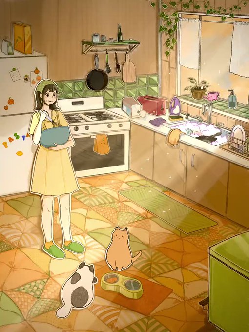 Afternoon baking after work ~ 💛#illustration #digitalart #digitalartist #イラスト