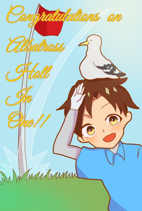 彼氏が人生初のホールインワンしたのでお祝いカードを描いた。 アホウドリが凄く可愛く描けた。 Par4だったのでアホウドリ描いたよ。