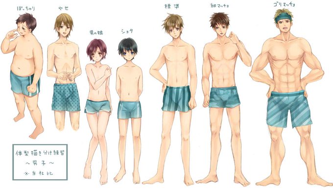 男子バージョン 体型描き分け練習(水着注意)