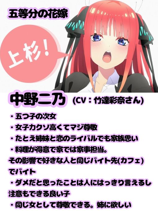 昨日のいつメンのグループ通話で開催された推しプレゼンは結局ごと嫁の二乃ちゃんでした〜!😘