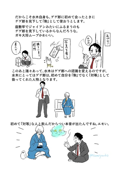 鬼猫に見える描写がありますが、友人のつもりで描いてます。目岩は公式。