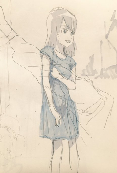 裏面に滲んだコピックの色に対して線を描いてみた。