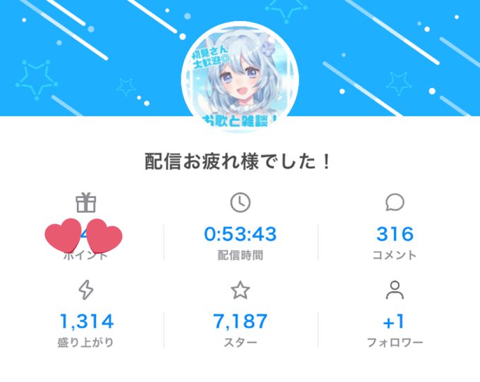 長時間配信の挑戦〜! たくさん付き合ってくれてありがとう💗 語尾かえるのも謎かけも 欲しいもの考えるのも 楽しかったなぁ✌️