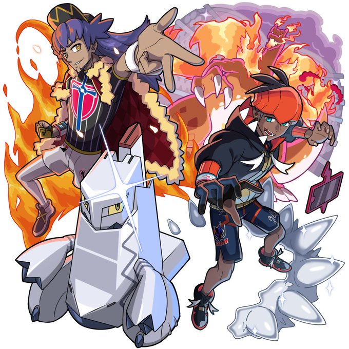 「キミの天候でスタジアムを盛り上げてくれよ!」 「言われなくてもな!本当はオマエと戦いたいけどよ!」 #ポケモン剣盾 #ダンデ #キバナ