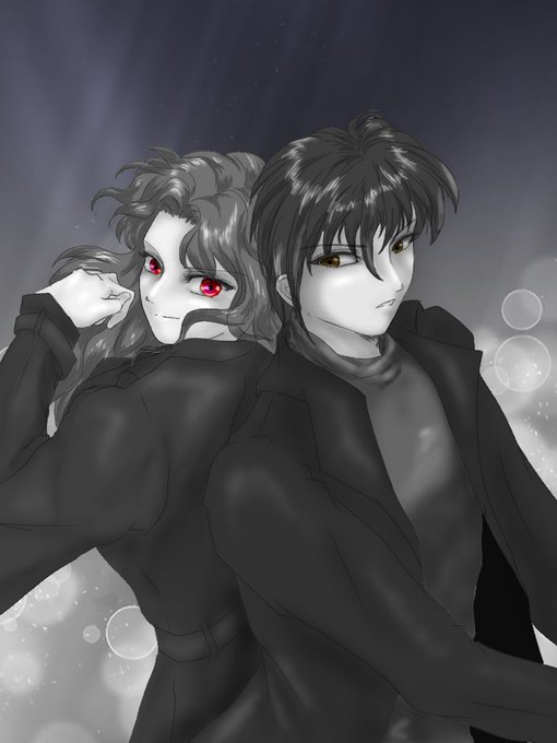 「フォロー頼めるか?」 「OK、任せて!」 的な2人。背中を預け合う関係って素敵ですよね(ᐥ꒳ᐥ ) #絵描きさんと繋がりたい #オリキャラ
