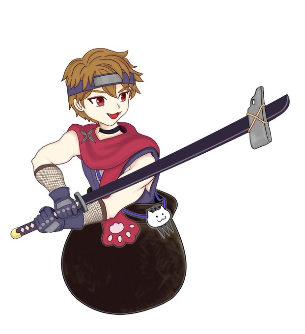 ニンニン&猫ポーチ実体化 #猫屋敷図 #このタグを見た人はラフ画とその完成絵を見せる