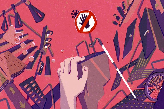 Illustrations for @decatorevista on the article of how Covid-19 measures affect the visually impaired who rely on sense of touch to navigate the space around them.