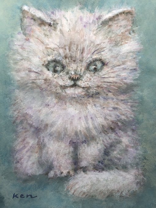こちらの絵は、本日4/15(金)から開催されている、千葉県匝瑳市・松山庭園美術館での、#猫ねこ展 に出品しています。