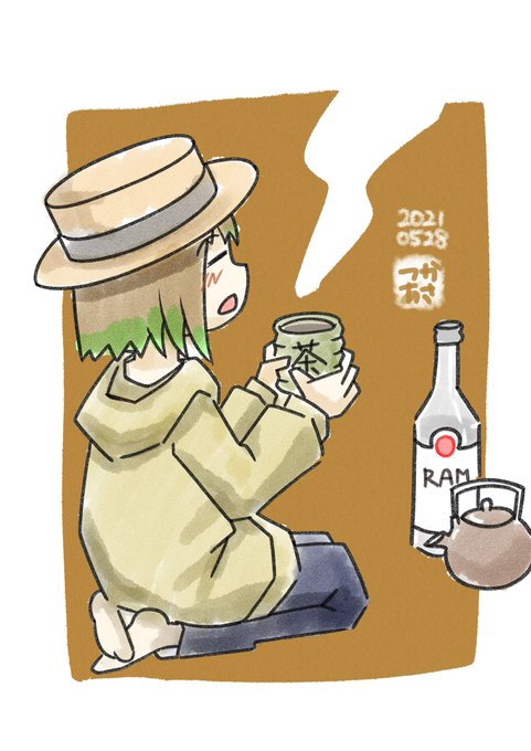 ラムのほうじ茶割んめぇ… 昨日の続き お前が呑むんかーい。 良い週末を。 #絵日記 #オリジナルキャラクター