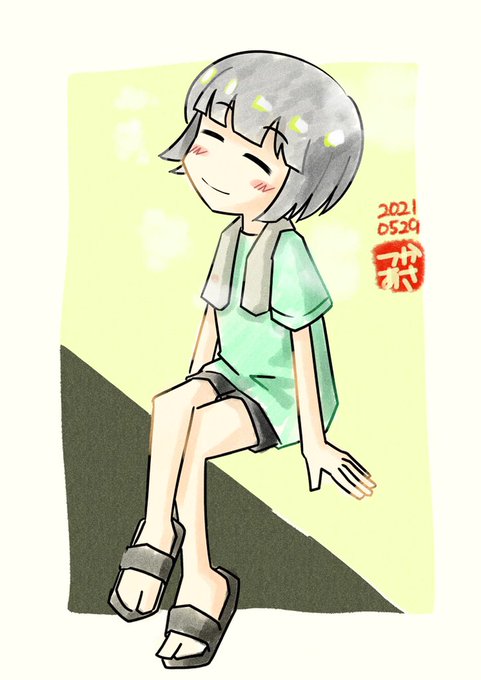 昼寝坊してお風呂入って心身共にゆるーくなってからの夕涼み。今日はもうなんもしなーい。 #オリジナルイラスト #絵日記