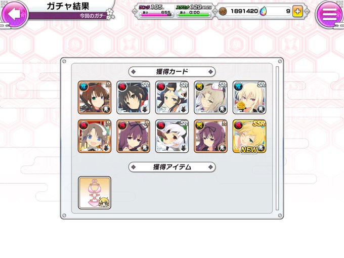 日影さんの閃乱覚醒やったどー‼︎ しかしこの短期間でSSR日影さんを3枚も引くとは…