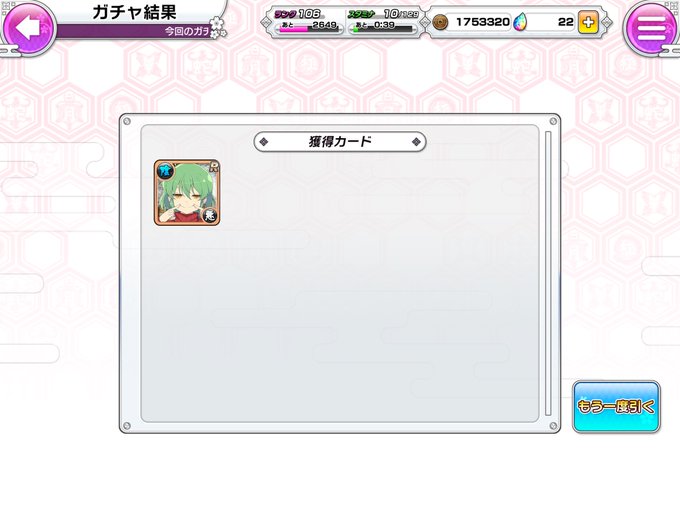 春花様はSSR初げっとぉ‼︎ 日影さんもピックアップと未所持出てくれてラッキー