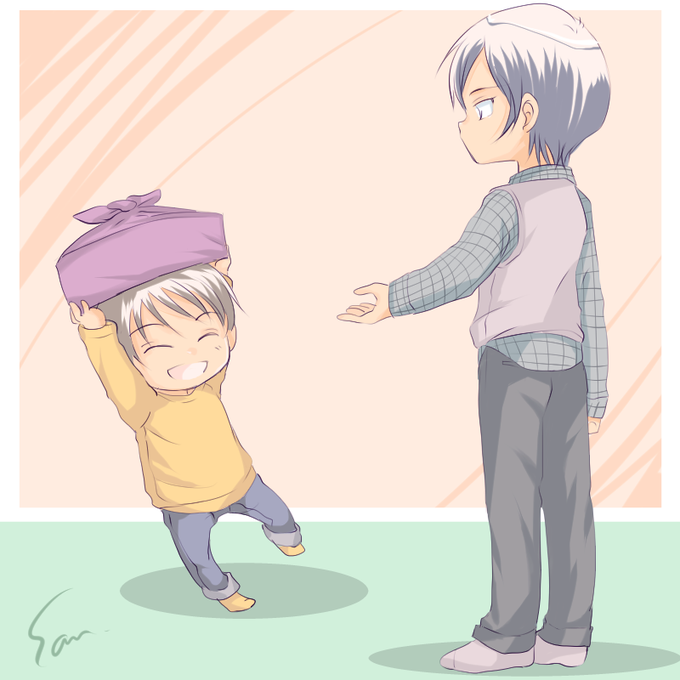おまけの諸伏家とかんちゃん 「おい、こうめい足に何かくっついてんぞ」 「えぇ、我が家の天使です(さらっと)」 「そうか、ところでぼたもち持ってきたぞ」 「いつもすみません」
