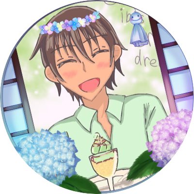 ネモフィラが美しかったから、はるちゃんが描いてくれたrsくんをネモフィラと蝶に囲まれるrsくんに🦋 爽やかで素敵だねrsくん!(*´∀`)