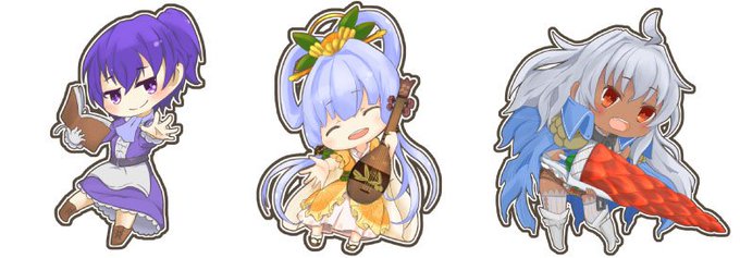 1人目…サフラン 2人目…カカラ サフラン、服と聞いてやってきたのかな?(´▽`) キセルが似合うね(*'ω'*) #花騎士でマイルームランダム設定にして一番目に来た子に二番目に来た子の服を着せた絵を描く